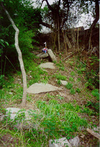 Lenore climbed the bank while we waited on the riverwalk below. |