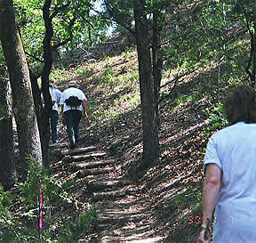| Half way up the hill. Walkers taking a break. |