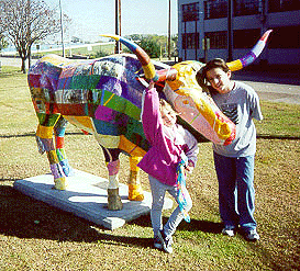 These WACOWS are not longer located along the YRE walk route in Waco. They were sold at auction to raise money for the Art Center. Seven WACOWS were not bought in the auction and they are located at the Art Center which is near the McLennan Community College. One of the sold WACOWS went to California, and one went to Florida. I called the Art Center for locations of the WACOWS that stayed in Waco, and they said they didn't have that information.
